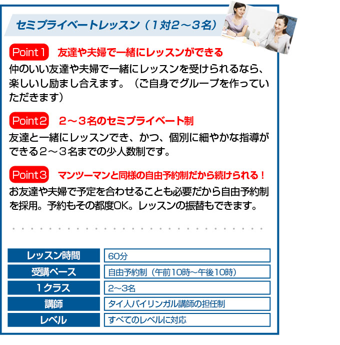 お客様の学習目的やご希望にあわせて、レッスンを自由に選べる、それが「タイ語スクールのトムヤムちゃんメソッド」。